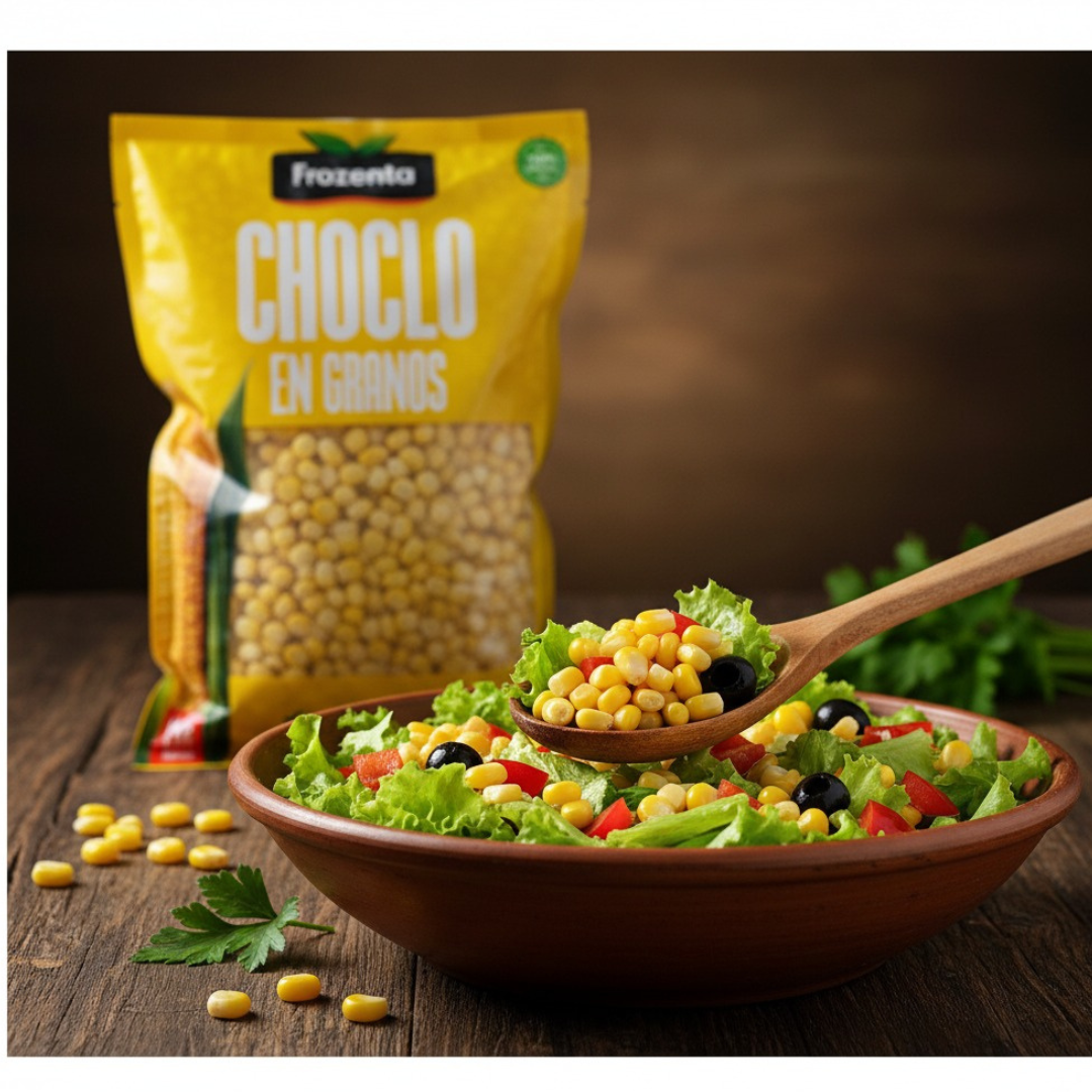 Nuestro choclo en granos te ofrece la máxima comodidad. Ya viene limpio, cortado y congelado, listo para agregar a tus platos favoritos. Perfecto para ensaladas, guisos, sopas y mucho más